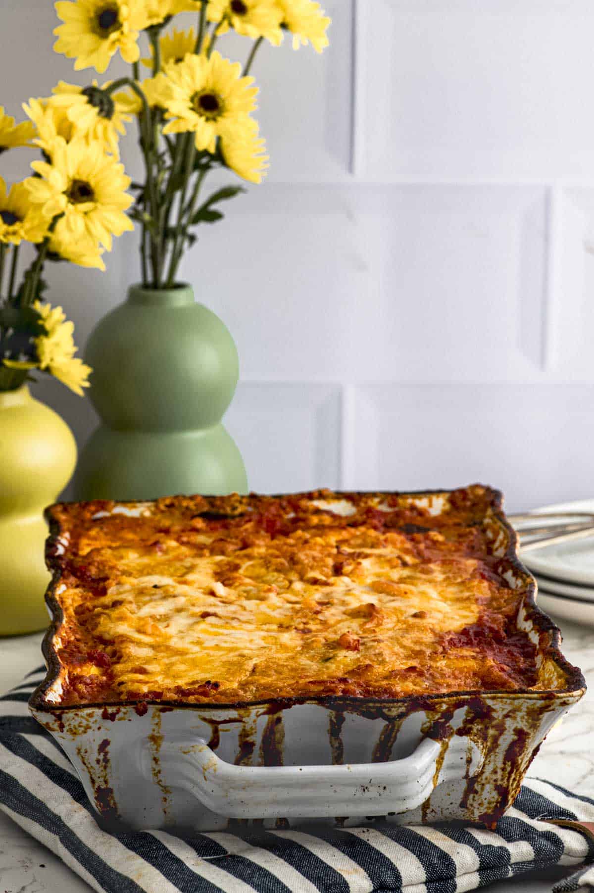 - Let the lasagna rest before slicing. It helps everything settle into easier-to-cut layers.