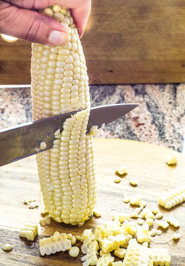 Cut the kernels off 2 ears of corn.