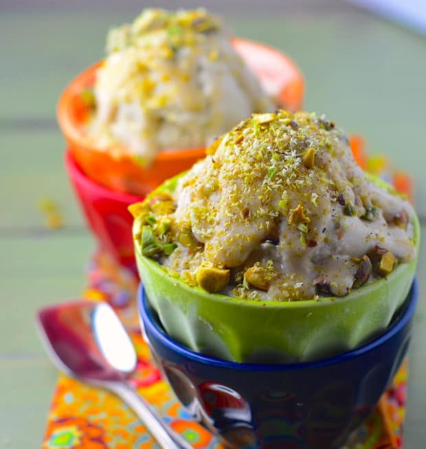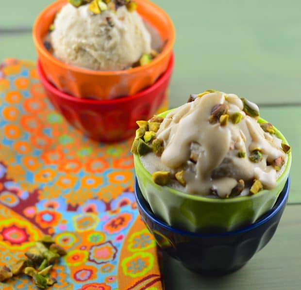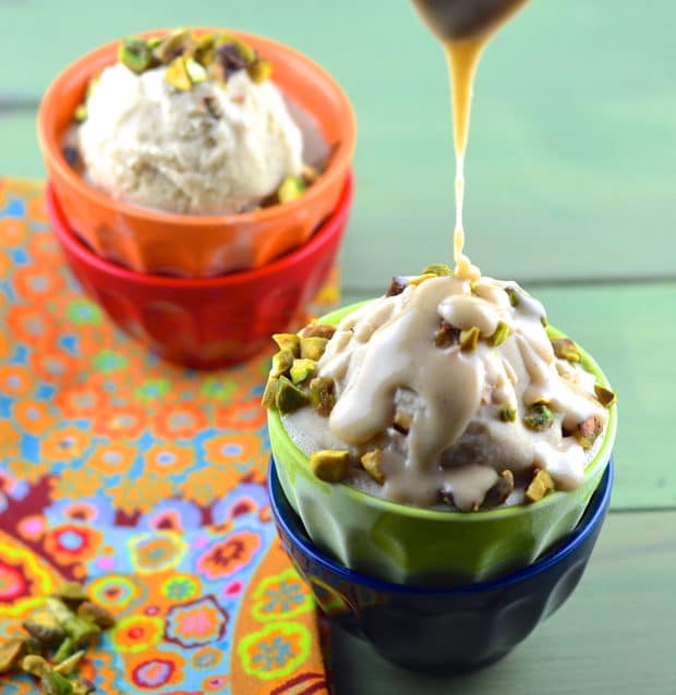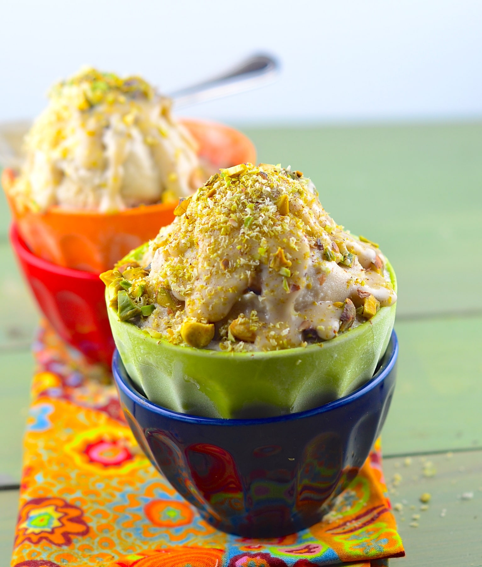 Vegan Tahini "Ice Cream" With Pistachios & Cardamom Halvah Sauce